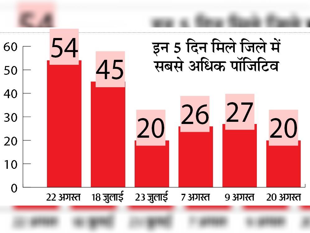 जिले में अबतक शनिवार को सबसे अधिक एक साथ 54 नए कोरोना पॉजिटिव मिले। इसमें स्वास्थ्य विभाग से जारी सूची में 49 के अलावा बीतीरात कोरर में दो और बांदे में तीन मरीज पाए गए। इसमें बीएसएफ जवानों के साथ ग्रामीण, मजदूर, सरकारी कर्मचारी भी शामिल हैं। कोरर में तीन दिनों में दूसरी बार कांग्रेसी नेता के परिवार में फिर डाॅक्टर पति व उनकी पत्नी कोरोना पॉजिटिव पाए गए। एम्स में इलाज के दौरान डाॅक्टर की मौत हो गई। वे शुगर के भी मरीज थे। मौत का कारण इलाज के दौरान हार्ट अटैक आना बताया जा रहा है।