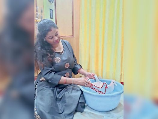 बोइतो बंदणा उत्सव पर महिलाओं ने परिवार की मंगल कामना के लिए नदी की बजाय टब में नौका बनाकर छोड़ा।